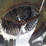 La limpieza consiste en aplicar nuestra espuma alcalina para derretir la grasa en cada una de las palas que la forman y realizar un raspado manual en el rodete, eliminando los excesos de grasas acumulados.